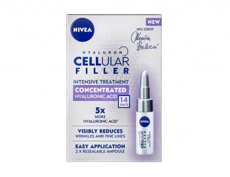 NIVEA Hyaluron CELLular Filler 14-dnevni tretman intenzivno hidratizira kožu potičući aktivnost u stanicama koje stvaraju vlastitu hijaluronsku kiselinu i na taj način popunjavaju bore.