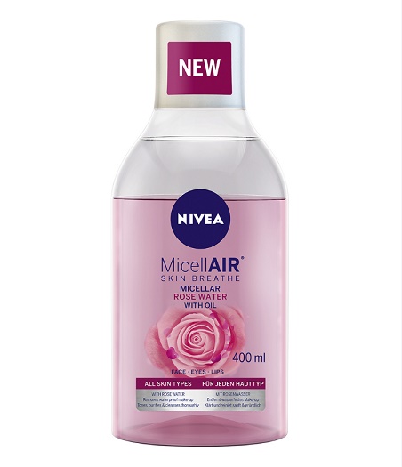 Nova linija NIVEA MicellAIR Rose water proizvoda za čišćenje lica temeljito će očistiti vašu kožu bez isušivanja i dokazati vam da je ružina vodica prirodni sastojak koji može zaista sve. Temeljito uklanja čak i vodootpornu šminku, hidratizira ju i ostavlja na koži mirisni poljubac ružinih latica koji se ne zaboravlja.