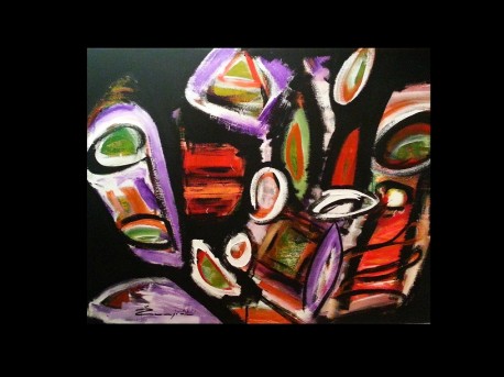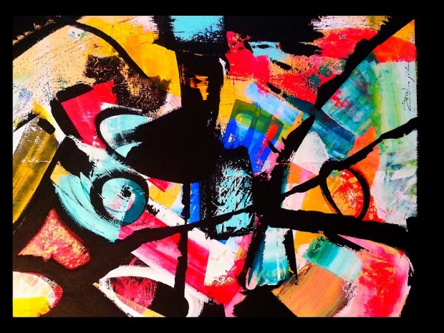 Raznobojne plohe različitih oblika i veličina egzistiraju na površini platna, doista poput tektonskih ploča i jasno je vidljivo, one se pomiču, gibaju, lijevo, desno, gore, dolje, brže, sporije, gibaju se stalno,kontinuirano gibanje je ključna karakteristika.