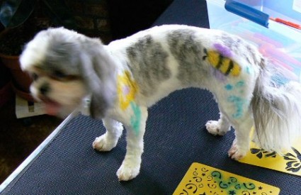 Naravno, nije riječ o pravim, trajnim tetovažama već o crtežima na dlaci koji se nanose pomoću zračnog kista, a boja koja se koristi, navodno, ne šteti zdravlju kućnih ljubimaca.