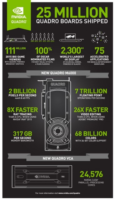 Jedna od najzanimljivijih grafičkih kartica namijenjenih profesionalcima konačno je stigla. NVIDIA Quadro M6000 je kartica namijenjena profesionalcima koji žele pravo čudovište u svojoj radnoj stanici i uz specifikaciju i perfomanse koje oduzimaju dah ispunjava sve uvjete koje moderna okruženja zahtjevaju.