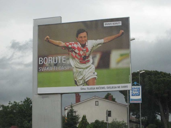 Osim plakata s Pahorom u glavnoj ulozi, u Koperu je osvanuo i onaj koji prikazuje hrvatsku šahovnicu s natpisom ''Puno ti hvala Borute''.