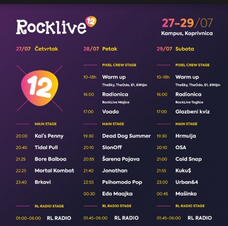 Ljubitelji glazbenih festivala ovog vikenda kreću put Koprivnice, gdje se od 27. do 29. srpnja na prostoru Kampusa održava 12. RockLive Festival