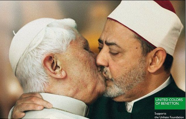 Na velikom plakatu obješenom na jednom rimskom mostu blizu ulaza u Vatikan prikazana je uvjerljiva fotomontaža pape Benedikta XVI. i jednog od vodećih imama arapskog svijeta, Ahmeda Mohameda el-Tayeba kako izmjenjuju strastveni francuski poljubac.