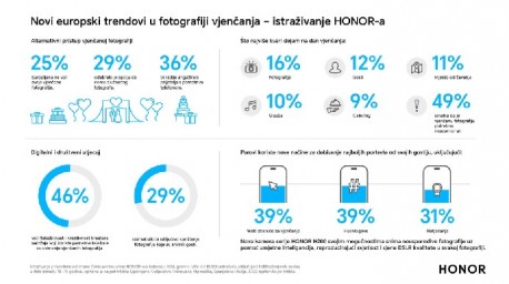 Istraživanje, naručeno od strane HONOR-a, globalnog proizvođača pametnih telefona, pokazuje koliko se mijenjaju preferencije parova kada je riječ o vjenčanoj fotografiji. HONOR-ova nova serija pametnih telefona HONOR 200 i HONOR 200 Pro nudi napredne značajke, uključujući AI Eraser, koji korisnicima omogućuje uklanjanje nepoželjnih objekata iz pozadine za čišće i ljepše fotografije.