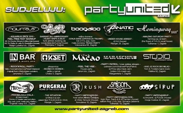 Veliki zagrebački klupski spektakl PARTY UNITED je krajem siječnja oduševio na tisuće posjetitelja noćnih klubova što najbolje dokazuje broj od preko 10.000 partyjanera koji su se 23.01.2010. godine usprkos temperaturi od minus šest stupnjeva Celzijevih, provodili cijelu noć diljem grada.
