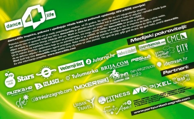 Da PARTY UNITED nije samo običan party dokazuje i suradnja sa svjetski priznatim brandom dance4life čime event od 1. svibnja dobiva i edukativnu komponentu. dance4life je globalni pokret koji inspirira, pokreće i ujedinjuje mlade kako bi potisnuli epidemiju HIV-a/SIDE zauvijek!