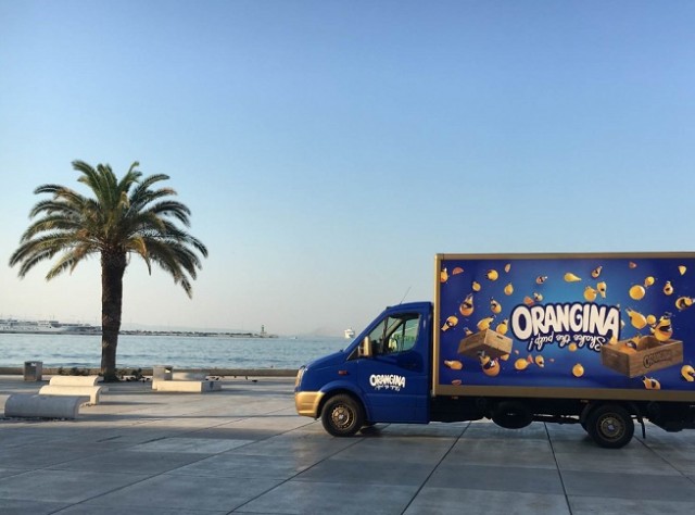 Posebno dizajniran kamion dovozi i trese vašu omiljenu Oranginu na mjestu konzumacije za potpuni užitak ispijanja izvrsno izbalansiranog pića uz osvježenje i zabavu