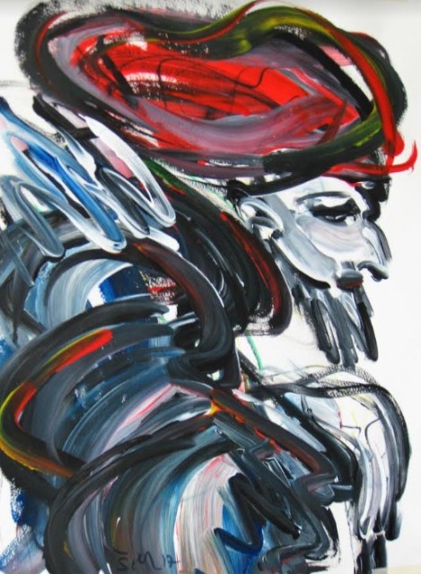 -Seriju slika koja nije uobičajena za mene. Riječ je o slikama na temelju likova iz Dunda Maroja. Lani sam u vrijeme 500. godišnjice smrti Marina Držića, u dogovoru s dubrovačkom Kućom Marina Držića, koja je muzejski prostor, naslikao po svom nahođenju neke od likova iz Dunda Maroja. Imao sam potpunu slobodu u radu. Kako sam ja gradski čovjek, ne zanimaju me pastorale, meni su najzanimljivije njegove komedije na bazi Plauta, Skup i Dundo Maroje. Cijela radnja Dunda Maroja odvija se u Rimu. Osobito mi je interesantan susret agrarnih likova iz Konavala, iz toga podneblja jugoistoka Europe i rimskih sofisticiranih, pokvarenih, lihvara, kurtizana, ljubavnica, pokvarenjaka, žena. Napravio sam te likove vrlo slobodno, u kostimima, oni su vrlo individualizirani, to nisu apstraktna lica, svako lice ima svoj jedinstveni karakter. Nisam se bavio svim likovima, odabrao sam tek jedan dio iz galerije likova. Moram reći da su me ti odabrani likovi jako zaintrigirali, nisam takvo što nikada radio. Zatvorio sam se u svoj dubrovački atelijer i poput Pigmaliona počeo slikati. Radovi su naprosto izbijali iz mene,napravio sam niz radova u različitim formatima,raznih skica, raznih varijanti.