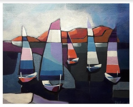 -Kao i jazz u muzici, apstrakciju u slikarstvu shvaćam kao sukus svega. Da bi se vladalo njome moraš sve proći, sve vidjeti. Cilj mi je biti na tragu apstrakcije, kako ste i sami rekli brodovi sliče apstraktnim formama, no uz brodove želim dosegnuti da cijela kompozija prikazuje temu, lako prepoznatljivu, samo uz jedan pomak. Taj pomak pokušavam ostvariti odmakom od stvarnosti i figurativnog. Ponekad uspijem ponekad ne, još sam dosta samokritičan u tome.