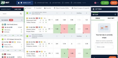Ako tražiš mjesto za klađenje s dobrim koeficijentima i izvrsnim izborom sportskih oklada, 20Bet Casino je savršen kasino za sve ljubitelje tenisa i sportskog klađenja.
