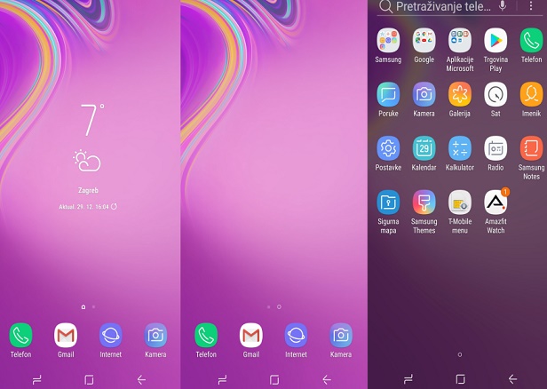 Galaxy A9 (2018) pokreće Android 8.0 na čijem je vrhu Samsung Experience UI 9.0 korisničko sučelje. Postoje mnogo elemenata kao u Note9. Zaključani zaslon nudi Samsungovu verziju koncepta obavijesti od jednostavnih značaka do punog teksta dolaznih poruka. Brze postavke imaju čist dizajn koji mi se sviđa. Za prikaz zaslona s aplikacijama potrebno je povući prstom s početnog zaslon prema gore kako bi se pojavio. Ovo rješenje mi je jako elegantno, iako možete dodati virtualnu tipku za pristup.