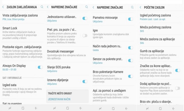 Što se tiče prikaza boja i njihovog zasićenja, imate na odabir 4 načina rada: AMOLED Film, AMOLED fotografije (pokrivenost u granicama Adobe RGB), Osnovni (raspon boja blizu sRGB standarda) i Prilagodljivi način koji je ujedno zadani. Potonji koristi široku paletu boja blizu DCI-P3 standarda. Također, za fino ugađanje tu je podešavanje intenziteta primarnih boja i ravnoteže, kao i plavi filtar . Android navigacijske tipke dio su zaslona. Međutim, možete ih sakriti i koristiti geste kako biste mogli iskoristiti cijelu površinu zaslona.