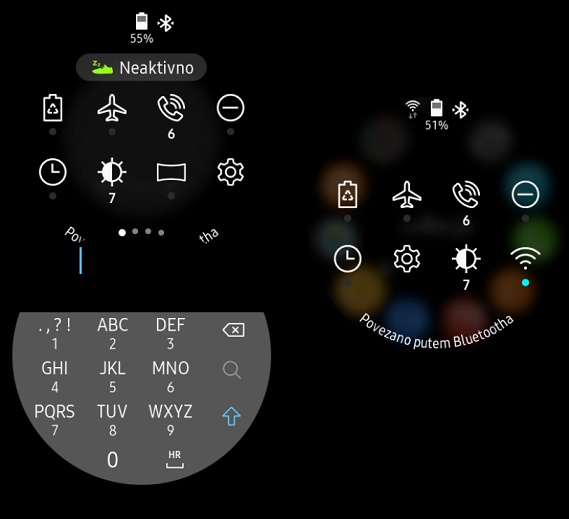 Ako prijeđete prstom prema dolje s vrha zaslona, dobit ćete pregled i kontrolu osnovnih postavki sata poput svjetline, baterije, veze itd. s jasnim i razumljivim ikonama. Prikazuje se do osam ikona. Možete ih prilagoditi onako kako želite.
