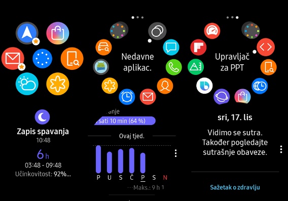 Sve aplikacije su kružne ikone koje su postavljene u krug duž vanjskog ruba zaslona. Iako Tizen OS nema neke značajne podrške aplikacija treće strane, poput Wear OS-a, to ne smatram nekim ozbiljnim nedostatkom.