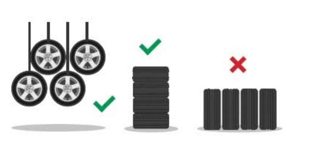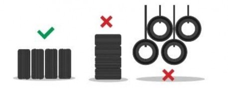 Ako gume na naplatcima ne možete objesiti, složite ih jednu na drugu, ali neka ukupna visina ne bude veća od 1,5 metra. Jednom mjesečno dobro ih je premjestiti da se na dnu izmjenjuju.