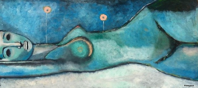 U ciklusu se posebno ističe BLUE NUDE, s hgorizontalno položenim nagim tijelom, koje se doima poput skulpture s očima od tame, ali privlačna, blijedo plavog poželjnog tijela, uz dva vertikalna cvjeta koja niču iz tijela, u potpuno mirnoj, gotovo umrtvljenoj kompoziciji, gdje bi i lahor vjetra izgledao poput udara i fijuka bure. Istaknute mistične oči, za koje ne znamo, možemo li kroz njih doprijeti do unutarnjosti polegnutog tijela ili su to samo zatvoreni kapci, da ne propuste svjetlost i ne probude uspavanu.