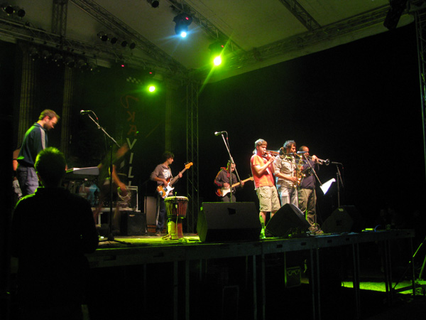 Čim smo smjestili svoje šatore okruženi vedrim i nasmijanim susjedima, netko od njih uletio je s pićem dobrodošlice i klopom, jer to je tak normalno na Skavilleu. Popili smo piće i krenuli prema pozornici, koja je na samo par koraka od šatora, da vidimo kako zagrijavaju početak večeri Nomades & Skaetera, The Kluba – ex Skalariak i Mala Vita.