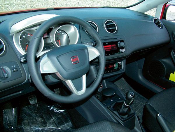 Valja kazati kako pri okretanju ključa šaka struže o plastiku. Ibiza nas je iznenadila crvenim LED, a ne LCD ekranom, rješenju koje je bilo nekad popularno američkim automobilima, ali se u europskim zadržalo vrlo kratko. Crveno svjetlo ekrana za ventilaciju i ekrana za radio komade je ugodno, a po sunčanom vremenu jako je velika refleksija na oba ekrana što ga čini teško čitljivim.