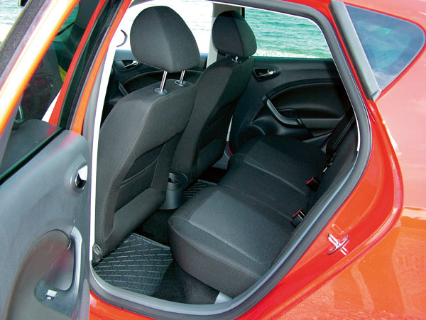 Porast centimetara najmanje je donio putnicima na stražnjoj klupi. Po širini Ibiza je među najužima u klasi i to putnici osjete. Premda su stražnja bočna vrata dosta velika, imaju čudan oblik, a otvor za ulazak je relativno malen. Maleno trokutasto staklo u stražnjem nosaču krova lijepo upotpunjuje dizajn linije karoserije (to mu je i jedini zadatak), ali mi bismo ga na tom mjestu radije zamijenili za veći otvor vrata što bi olakšalo ulazak putnika.