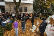 Jad i bijedu visokog obrazovnog sustava simboličnom su izvedbom prikazali studenti pulskog učilišta u parku filozofskog fakulteta. Oni su naime odigrali performans svečanog otvorenja studentskog doma i menze. Dom i menzu su improvizirano sagradili od bloketa siporeksa. Studenti su i dalje u blokadi i zahtijevaju besplatno studiranje.