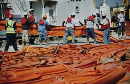 Ribare koji su ostali bez posla zaposlio je BP kako bi na brodove ukrcavali rampe za područja zagađena naftom.