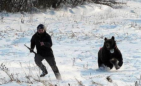 Bilo je to neugodno iznenađenje lovcu, kada se mjedvjed odjednom probudio i krenuo u napad