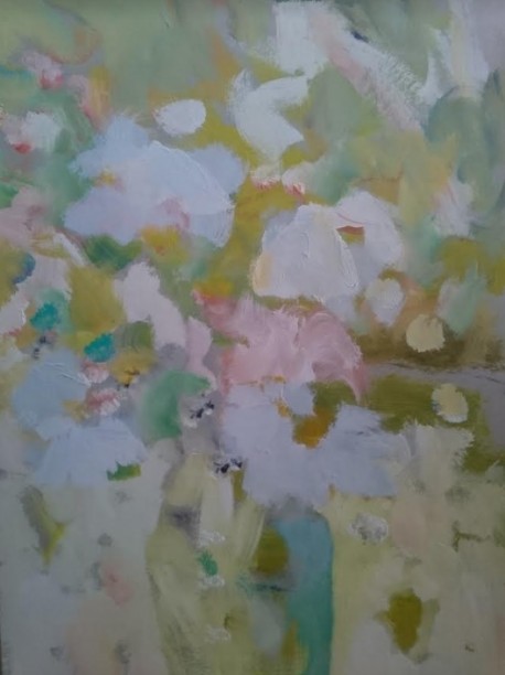 Ponekad se i slikarica malo zaigra i motiv cvijetova s vazom pretvori u apstraktni doživljaj nakupina, mrlja i točkica boje, jednako slijedeću svoj ideju o jedinstvenoj atmosferi.