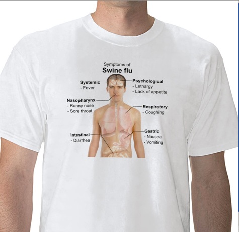 Američki portal www.zazzle.com nudi barem dvadesetak različitih majica s natpisima tipa Bio sam u Meksiku i sve što sam dobio je svinjska gripa ili Swinebusters, po cijenama od 19 dolara, a uz to idu i pripadajući privjesci za ključeve, šalice, kape, kravate i slične stvarčice po cijenama od šest do trideset dolara.