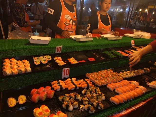 Mi smo ljubitelji sushija... možemo ga jesti uvijek i svugdje, no ovo na noćnoj tržnici u Krabiju nas je ostavilo bez daha. Ustalom, slika govori više od riječi, kažu...