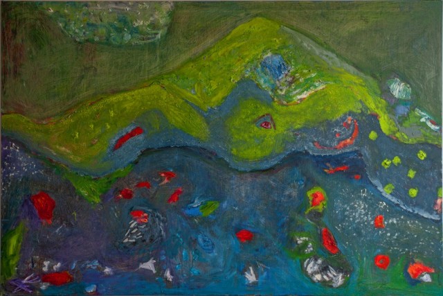 Vrlo snažan, zgusnuti kolor prekriva svaki četvorni centimetar slike u svijetu koji je istodobno i nefiguratrivan i figurativan, preplićući se međusobno, pretvarajući se iz čvrsta oblika u amorfnost.