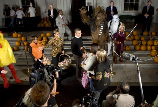 Bijela kuća za tu je prigodu nakratko zasjala u narančastoj boji bundeva, prva je dama odjenula kostim leopardovog uzroka i krznene uši, a i dio ostalih dužnosnika Bijele kuće prerušio se, poput primjerice glasnogovornika Roberta Gibbsa koji je bio Darth Vader iz filmskog serijala o ratovima zvijezda.