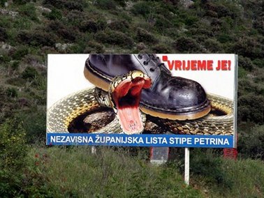 Postigavši uspjeh na lokalnoj razini, Petrina je shvatio da ga Županija lagano ignorira, pa se potrudio, oformio neovisnu listu s najživopisnijim plakatom (na kojem martensica gazi glavu poskoka) i osvojio mandat u županijskoj skupštini.
