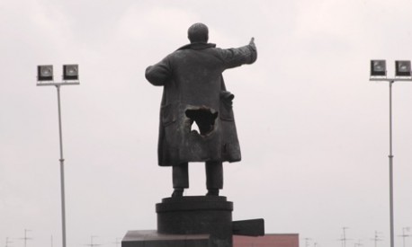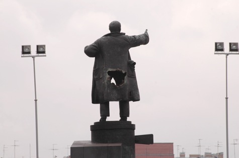 Politički aktivisti izbušili su rupu kroz sredinu kipa vođe boljševičke revolucije Vladimira Lenjina u četvrtak oko ponoći.