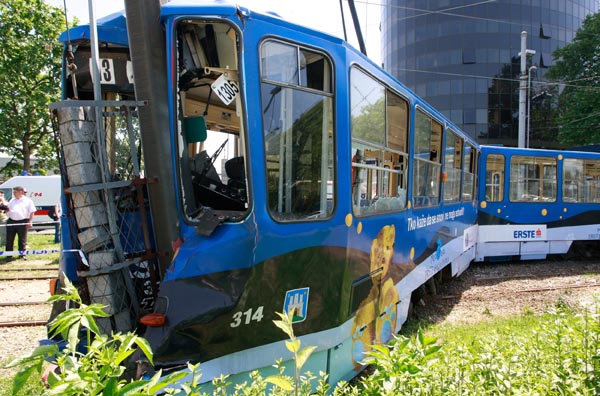 Putnici tramvaja broj 13 pamtit će zauvijek vožnju u utorak u 13.12 sati Vukovarskom ulicom u prema Žitnjaku. Iz neutvrđenog razloga, na raskrižju s Heinzelovom ulicom ‘trinaestica’ je iskočila iz tračnica i zabila se u metalni stup koji je doslovce ušao u kabinu vozača tramvaja.