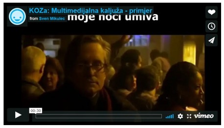 Multimedijalna kaljuža predstavlja pet različitih filmića koje smo montirali za kviz. U svakom filmiću ekipe će morati paralelno analizirati sliku, zvuk i titlove. Primjerice, u ovoj snimci traži se ime filma (video), ime serije (audio) i ime pjesme (titlovi):