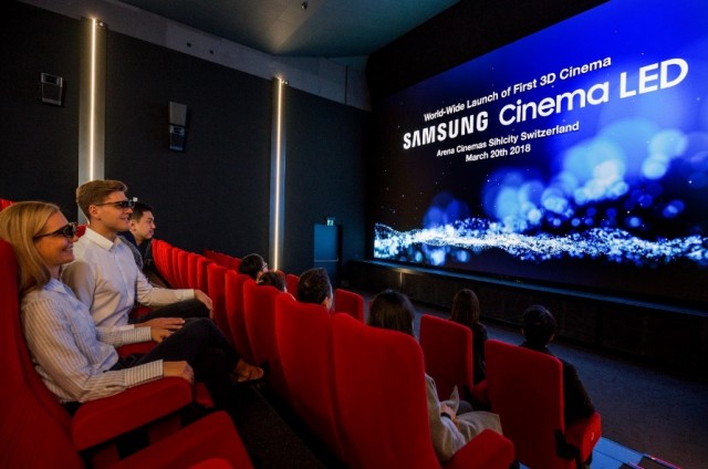 Arena Cinemas, filmski kompleks u Švicarskoj, ovog tjedna otvorio je prvu svjetsku kino dvoranu sa Samsungovim divovskim LED ekranom koji može prikazivati 3D filmove bez potrebe za posebnim projektorima, ali dalje se tehnologija oslanja na posebne naočale kako bi se stvorio trodimenzionalni efekt.