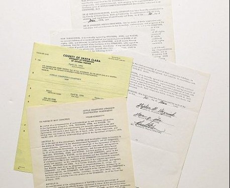 Ipak, tvrtka Sotheby's iz New Yorka ne prodaje bilo kakav komad poslovne memorabilije, već ugovor u kojem stanoviti Ronald Wayne, poznatiji i kao tzv. „treći partner" u Appleu, prodaje svoj udio u tvrtki za tričavih 800 dolara, ostavljajući tvrtku u rukama Stevea Jobsa i Stevea Wozniaka.