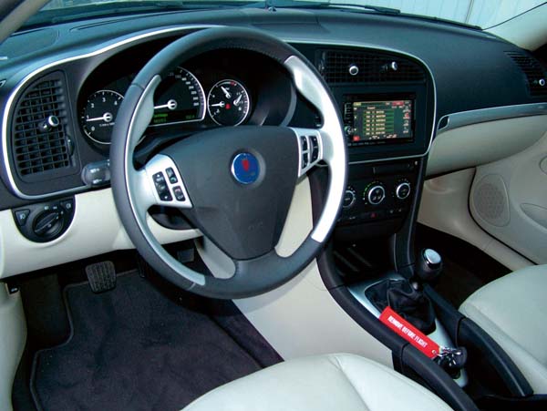 Stoga vuče lijevo-desno, što vozač mora brzo korigirati upravljačem i hvatati smjer ceste, ili u krajnjem slučaju malo oduzeti nogu s gasa. Motor malo grubo reagira pri naglom ubrzanju i trebalo bi malo čvršći prednji ovjes. Testirani Saab ima sportske perfromanse, ubrza do stotke za samo 8,7 s i potegne do najveće brzine 220 km/h.