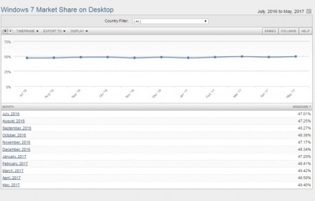 Ostatak privatnih i poslovnih korisnika još uvijek je ostao na Windows 7. Da budemo precizniji, statistički podaci za svibanj koje je objavio NetMarketShare, Windows 7 koristi 49,46 posto desktop uređaja.