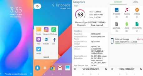 Memorija: RAM 3 GB - interna fash 32 GB + microSD