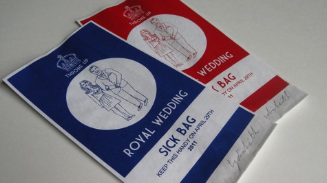 Za kraljevsko vjenčanje tiskane i vrećice za povraćanje