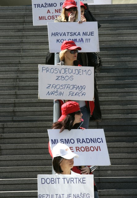 Radnici su glasnim zviždanjem tražili zaustavljanje pada plaća u T-HT-u i prestanak otpuštanja. Predsjednik sindikata Jadranko Vehar zatražio je povećanje plaća za 22,5 posto jer, kao je istaknuo, one su u proteklih šest godina realno pale u odnosu na državni prosjek za više od 31 posto. Ustvrdio je da radnicima T-HT-a plaće nisu rasle od 2002. godine.