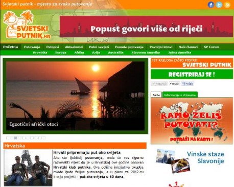 SvjetskiPutnik.hr je portal o putovanjima gdje možete pronaći putopise i priče s putovanja, informacije o odredištima, najave turističkih događaja, a i sami možete biti aktivni na njemu stvaranjem vlastitog putnog profila ili pisanjem putopisa.