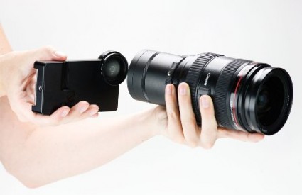 Adapter za DSLR leće - iPhone 4S ima izvrsnu 8 megapikselnu kameru koja može snimati video zapise u HD formatu, no i dalje se ne može ravnati s profesionalnim DSLR fotoaparatima. Ili ipak može? Zahvaljujući adapteru tvrtke Photojojo, koji se stavlja na stražnji dio mobitela, vlasnici iPhone sada mogu montirati masivne leće i snimati fotografije baš poput profesionalaca. Cijena maske je 250 dolara, a za leće ćete morati izdvojiti pozamašnu svotu koja vrlo lako može debelo premašiti vrijednost samog mobitela.