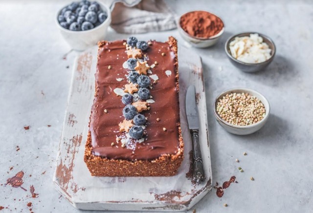 Recept za ukusni tart od heljde, kokosa i badema s čokoladnom ganache kremom od batata i kakao maslaca prema receptu food blogerice Maje Brekalo.