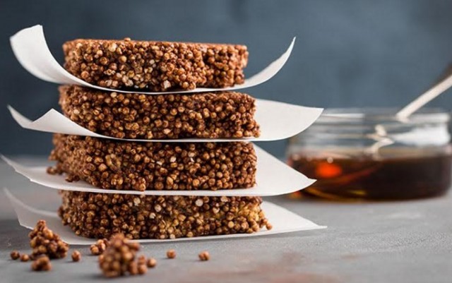 Smjesu nanesi na vlažan lim za pečenje (dimenzija 30x20 cm) i vlažnim rukama poravnaj. Stavi u hladnjak preko noći da se ohladi i stisne. Reži na kvadrate ili trokutiće.