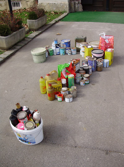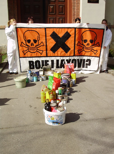 12. veljače ove godine Zelena je akcija održala performans u sklopu kojega je ispred zgrade Ministarstva na sedam sati bilo postavljeno 50-tak praznih limenki boja i lakova. Cilj je bio ukazati na važnost zbrinjavanja opasnog otpada. „Ministarstvo je upozoravalo građane kako se limenke potrošenih boja i lakova mogu odložiti u reciklažna dvorišta, što nije bila i stvar u praksi. Do naše akcije takva je vrsta otpada bila u ingerenciji samo specijaliziranih tvrtki koji su ga uz novčanu naknadu odvozili i zbrinjavali", rekla je Jagoda Munić, potpredsjednica Zelene Akcije.